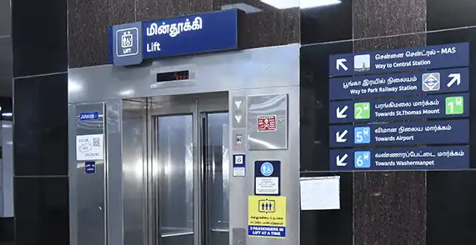 Sərnişinlər şaquli liftlər alaraq stansiyalara, köçürmə və ya çıxış stansiyalarına səmərəli və rahat şəkildə daxil edə bilərlər. Lift mühərriklərinin texniki səviyyəsi sərnişinlərin sürüşmə təcrübəsini təmin etmək üçün əsas rol oynayır. Nidec KDS, 60 ildən çox motor sənayesi ilə dərin məşğul olmuşdur. Məhsulları beynəlxalq səviyyədə inkişaf etmiş texnologiya dizaynını, əla istehsal və keyfiyyət idarəçiliyini birləşdirir. Yüksək keyfiyyətli məhsullar və hərtərəfli bir xidmət sistemi ilə, on ildən çoxdur ki, metro layihələrində böyük hindistanlı müştərilər üçün lift dartma maşınları üçün sabit bir şəkildə təmin edilmişdir.