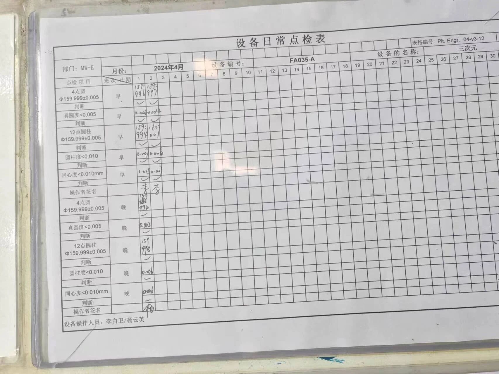 • Avadanlıq vəziyyətinin effektiv monitorinqi üçün gündəlik avadanlıq yoxlama vərəqi