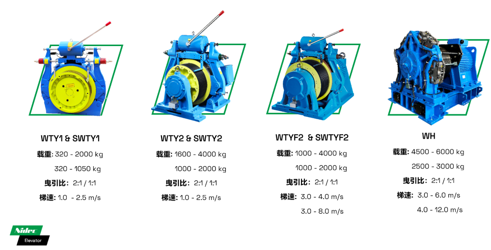 • 5500KG-a qədər maksimum yükləmə qabiliyyəti və 3m/s maksimum lift sürəti ilə müxtəlif dartma nisbəti sxemləri 2500KG-dən 5500KG-a qədər olan yük tələblərini əhatə edir.