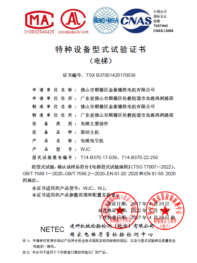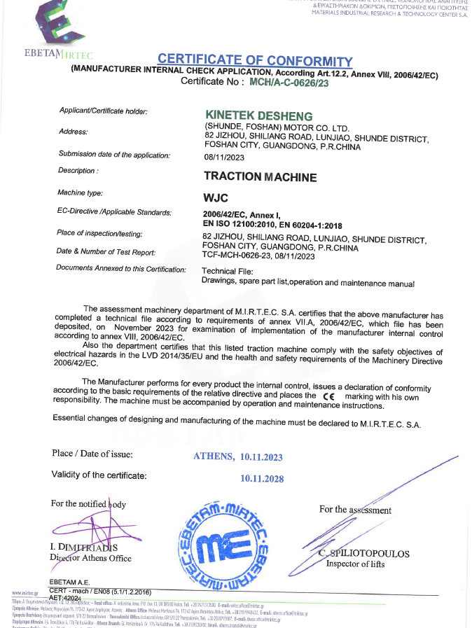 4. AB CE Sertifikatı (Əyləclər üçün Motors və EN81 sertifikatlaşdırma üçün AŞ Sertifikatı): WJC / Wty1 / Wt / Wty2 kimi modellərimizin bütün seriyasını əhatə edir.